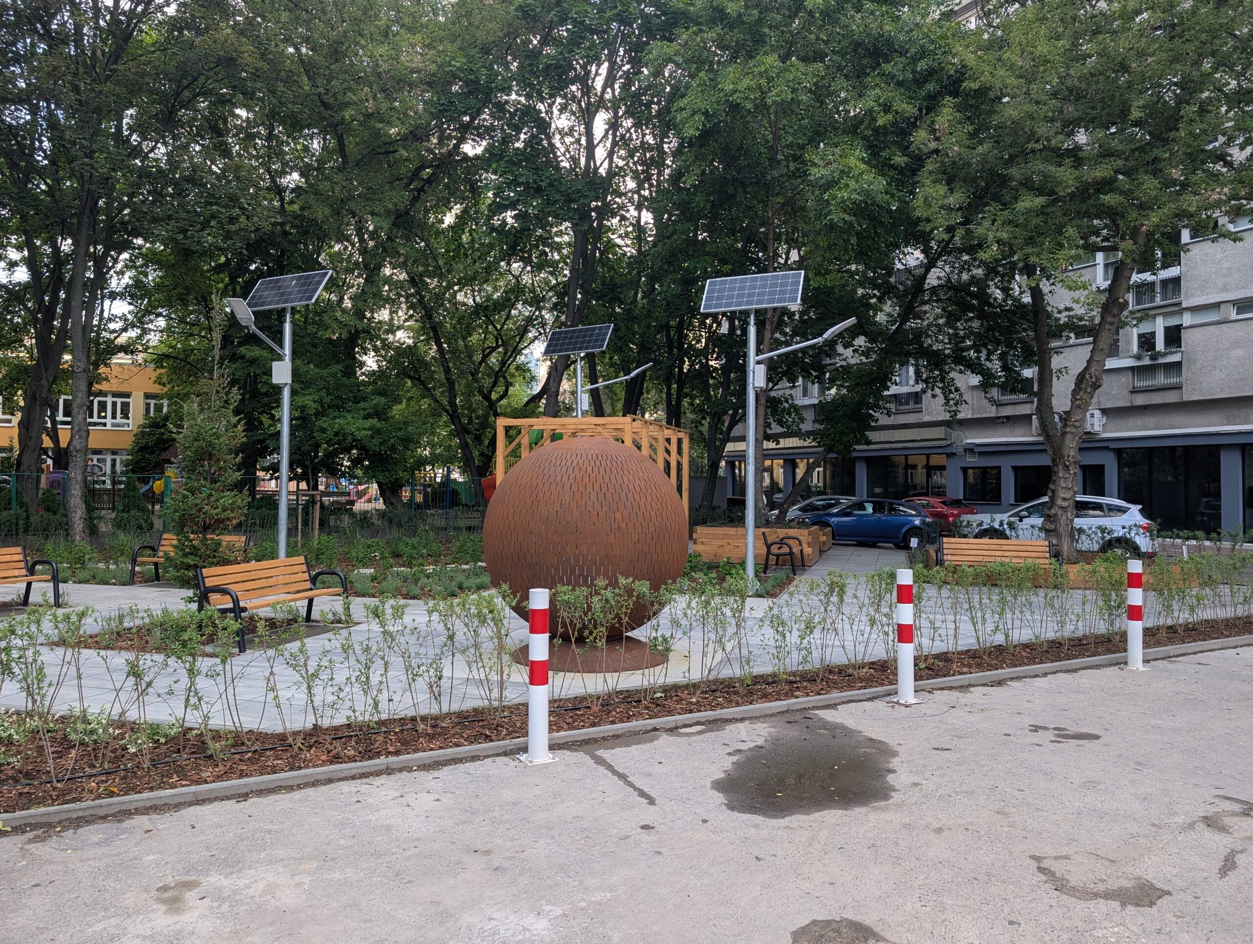 I wreszcie crème de la crème całej inwestycji – zardzewiała kula. Monumentalna, majestatyczna, absolutnie niepraktyczna. Ale za to jaka artystyczna! Idealna do kontemplacji nad sensem życia i budżetem spółdzielni.